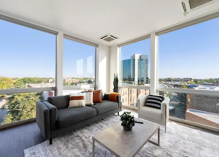L'appartamento di 111 m² 2Br City Loft Amazing Glass Views Chicago si trova nel distretto Logan Square e la stazione della metropolitana California è a circa 5 minuti a piedi.